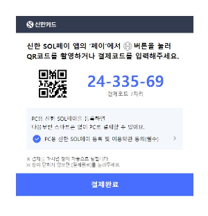 컴퓨터에 있는 QR코드를 누르면 결재가 완료되면서 결재 완료창이 보이이게 되는데요