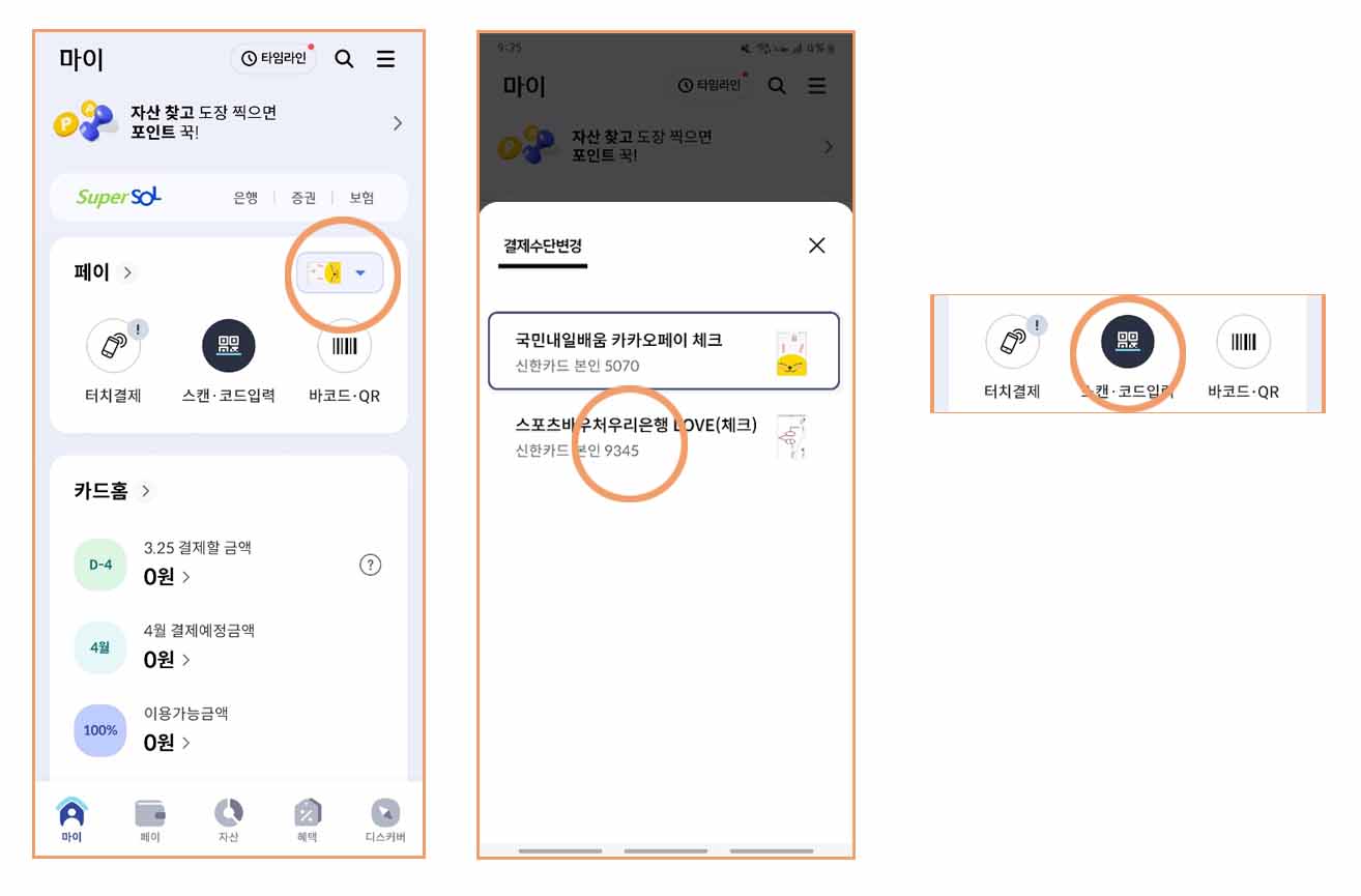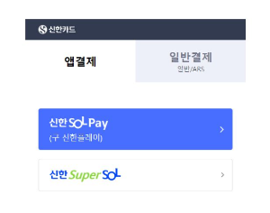 앱카드가 있다고 하면 SOL Pay를 눌러서 진행 하시면 되고, 어플이 없다면 일반 결재를 누르면 됩니다.