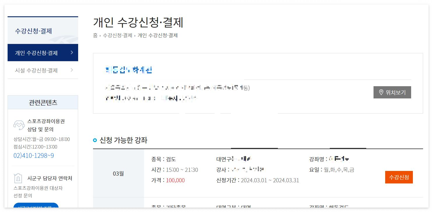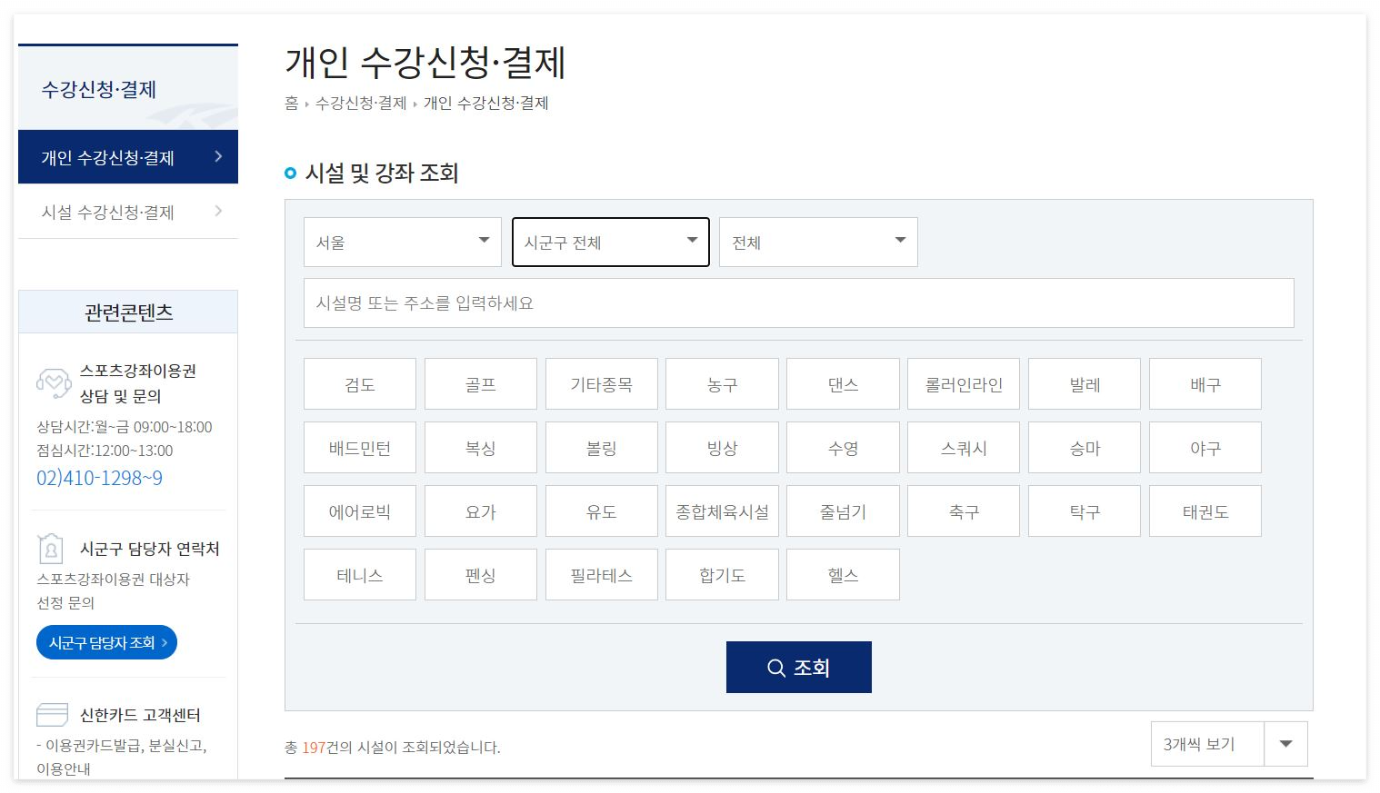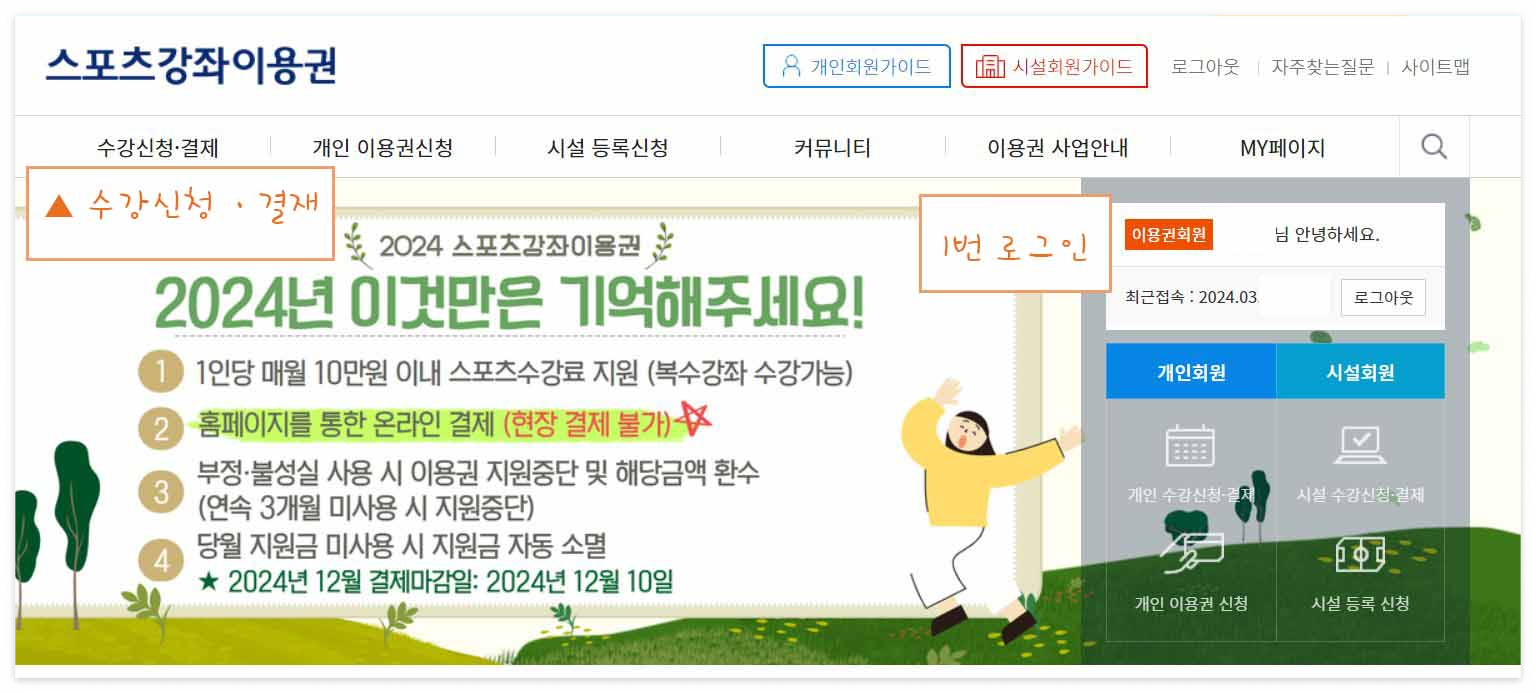 일단 홈페이지 < 스포츠 강좌이용권> 로 갑니다.