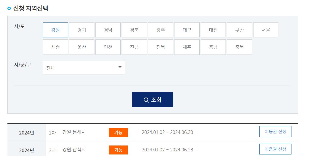 혹시나 내가 살고 있는 지역이 마감되지 않았다면 지금이라도 신청해보시는건
