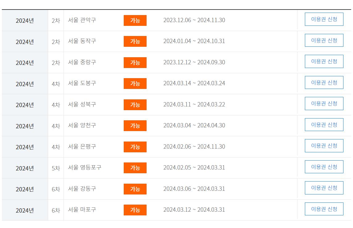 서울 지역에도 신청 가능한 지역들이 있어 신청하실 수있다면
