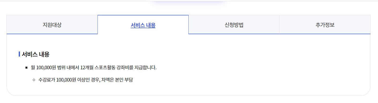월 수강료 100,000원 범위 내에서 12개월 스포츠 활동 강좌비를 지급하는데,