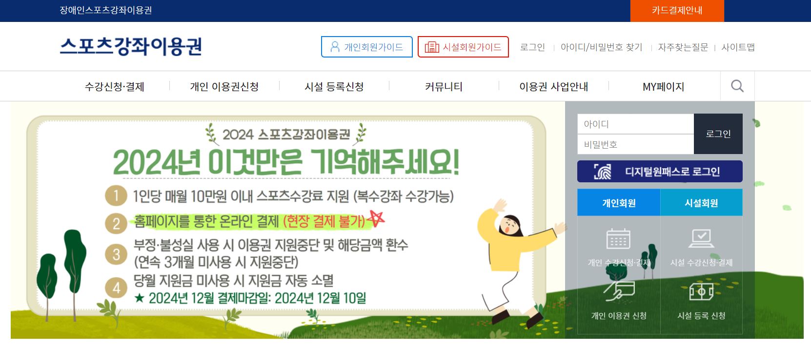 스포츠강좌이용권 홈페이지 메인화면 <▲링크 해놓았어요>