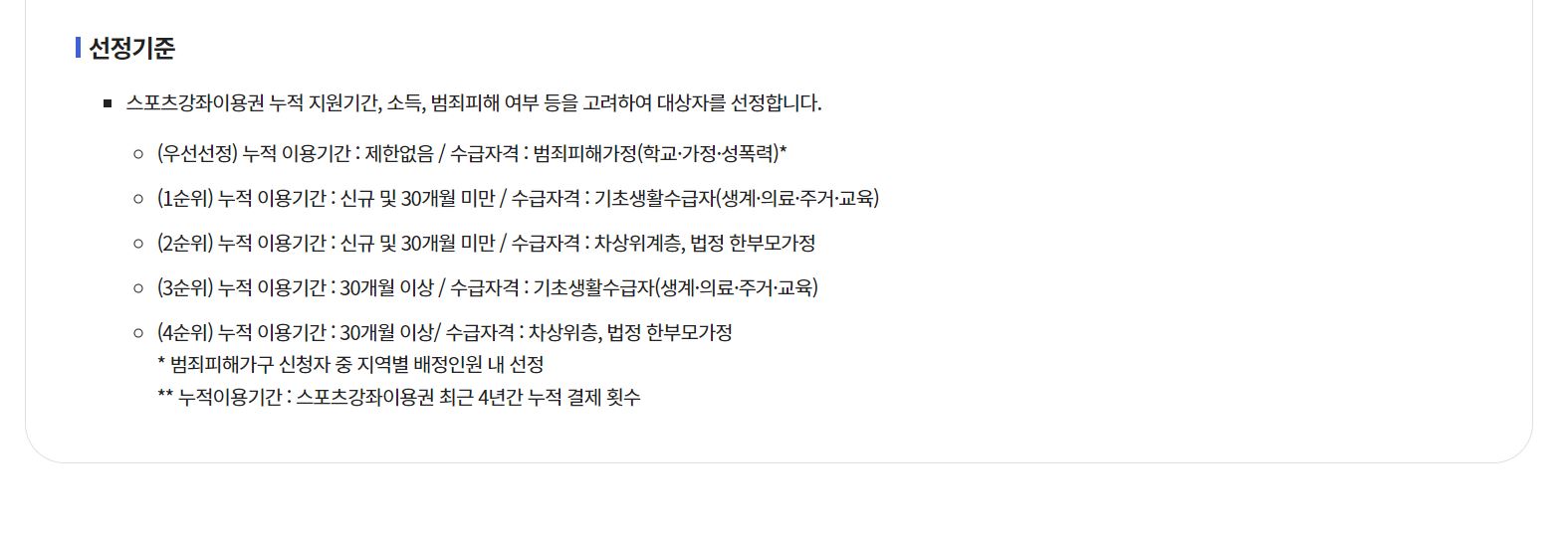 스포츠 강좌권을 신청하기 위해서는 대상자가 되는지 확인을 해야 한다.