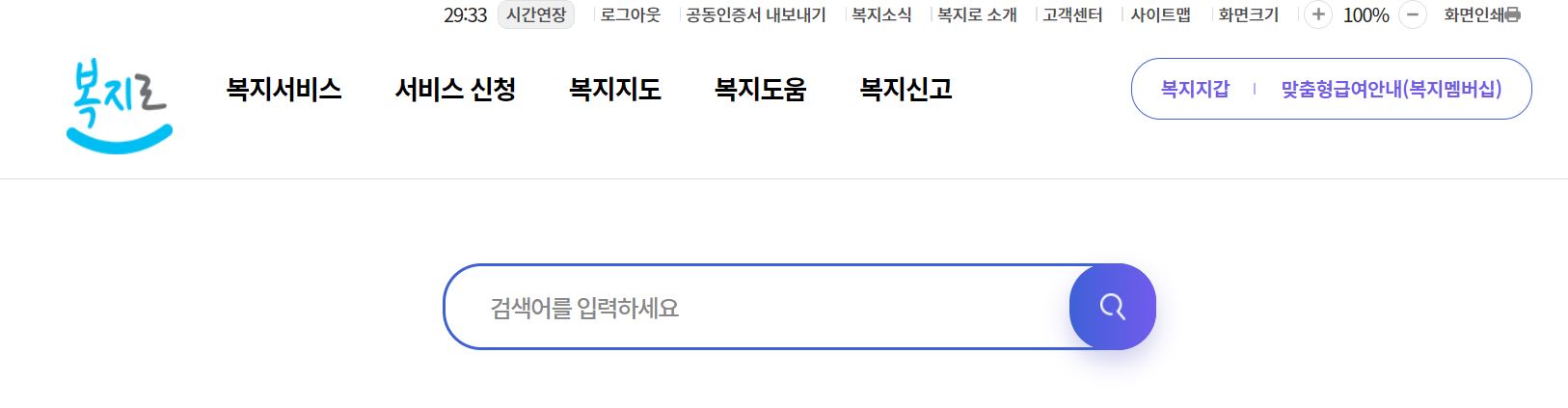 복지로 사이트에 접속하면
